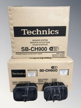 A Technics SD-CH900 four piece speaker system and further SB-CH900 speaker system, all parts boxed, and two further Technics speakers.