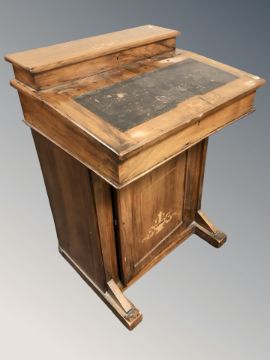 A Victorian figured walnut and satin inlaid Davenport, width 53 cm