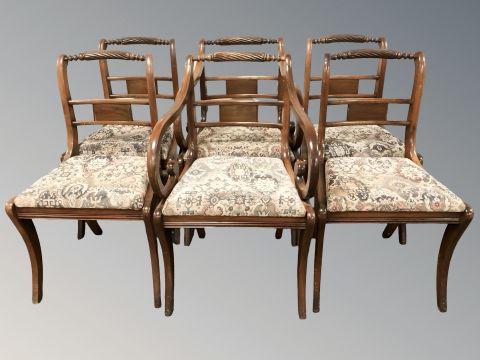 A set of six Regency style mahogany dining chairs, plus an elm ladder back chair (7)