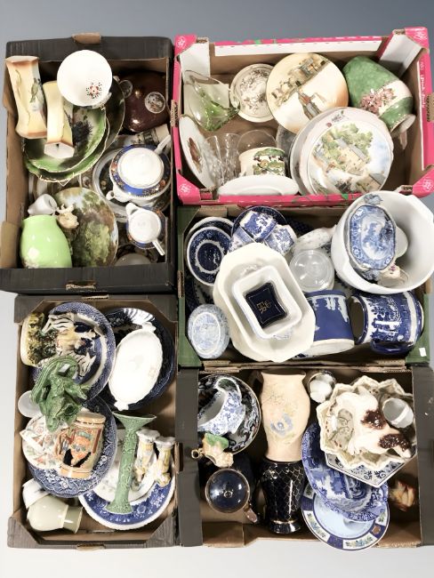 A large quantity of ceramics, blue and white willow pattern items, collector's plates, table wares, etc (one pallet)