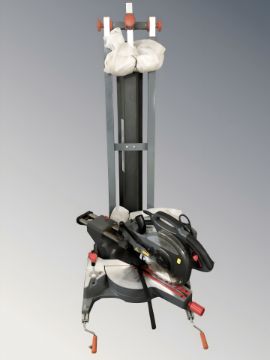 A Performance Redeye 255mm slide compound mitre saw, with instructions and collapsible stand.