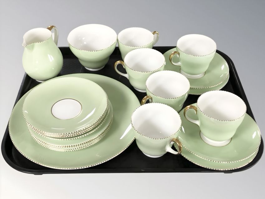 Twenty one pieces of Wedgwood tea china on pale green ground.