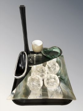 A set of four Scandinavian textured glass tea light holders, further glass ware including slender vase, bowls, etc.
