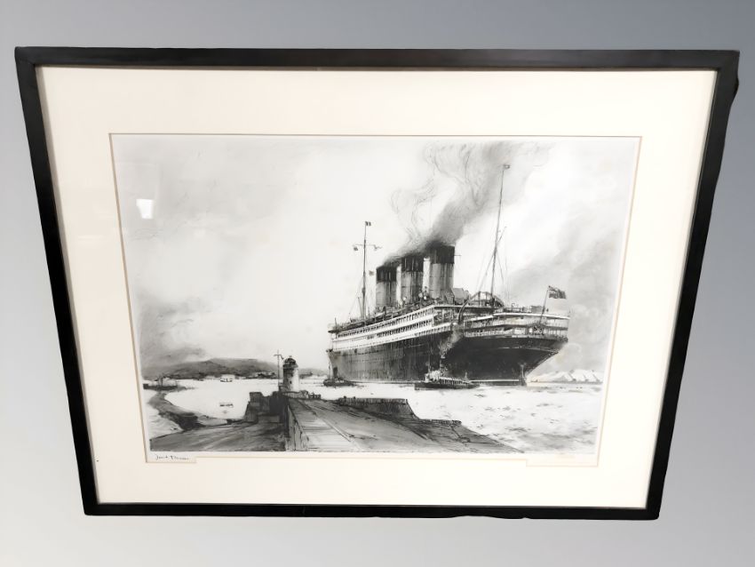 After Frank Mason : Cunard White Star RMS Berengaria, monochrome engraving, 40 cm x 58 cm