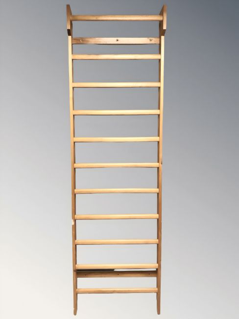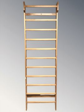 A Scandinavian pine ladder wall rack, width 71 cm.
