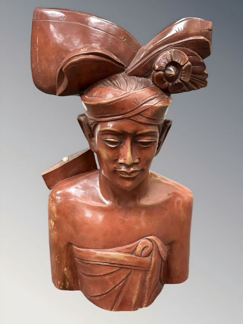 A carved Balinese figure 'Pearl Diver', height 28 cm