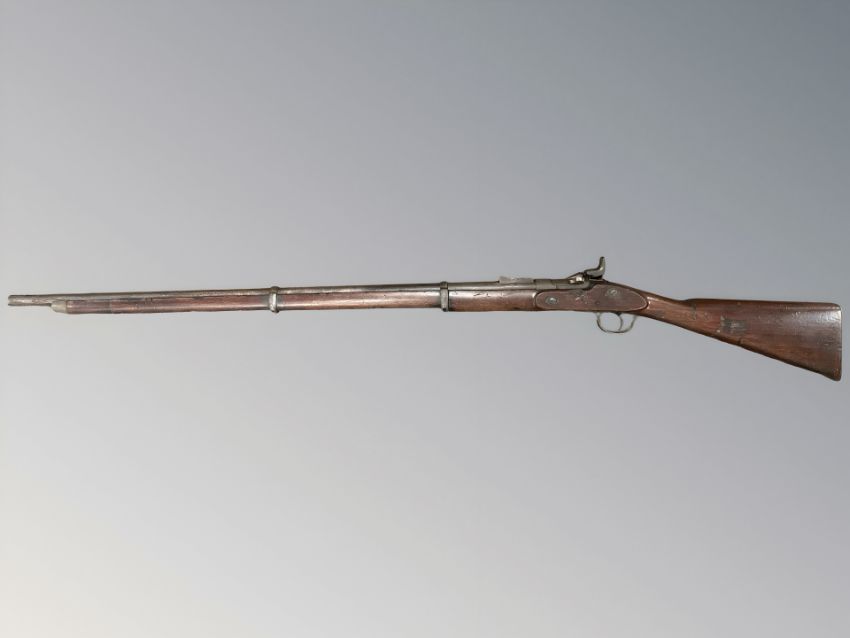 A Victorian British .577 calibre two-band Snider-action rifle by Kerr, 54 King William Street, London, walnut stock, brass trigger guard and butt plate, lockplate stamped with maker's name and VR cipher, various proof marks at the breach, lacking cleaning rod, length 140cm