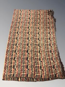 An Eastern flatweave tasseled throw, 280 cm x 215 cm.