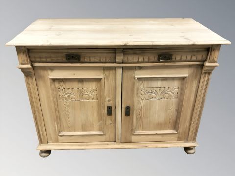 A 19th century pine sideboard, 116 cm W x 54 cm D x 89 cm H.