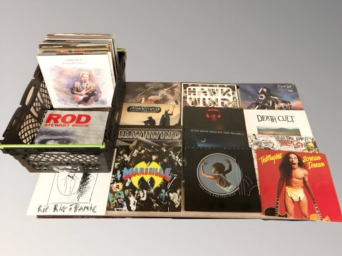 Vinyl LP records including Hawkwind, Death Cult, Meatloaf, Rod Stewart, The Carpenters, Elvis Presley, Foreigner and other mixed titles. (1 box)
