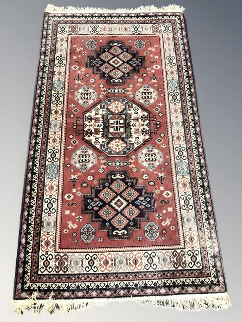 A machine made rug of Persian design, 213 cm x 111 cm.