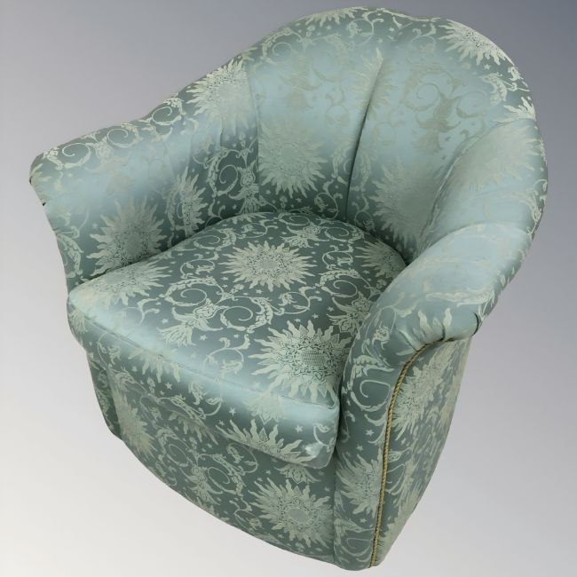 A 20th century armchair in turquoise upholstery, width 73 cm