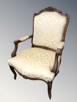 A 20th century continental carved beech salon armchair, width 73 cm.