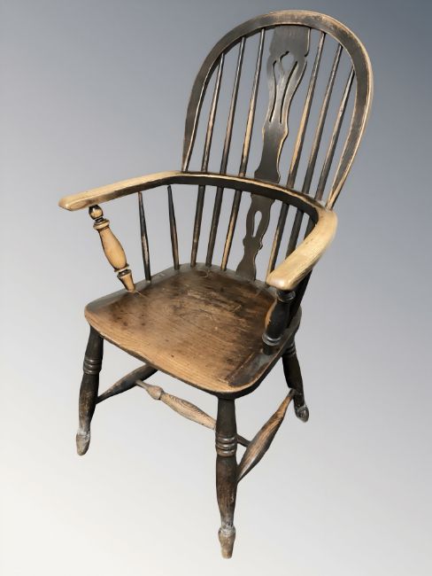 A 19th century elm spindle backed Windsor armchair, width 60 cm