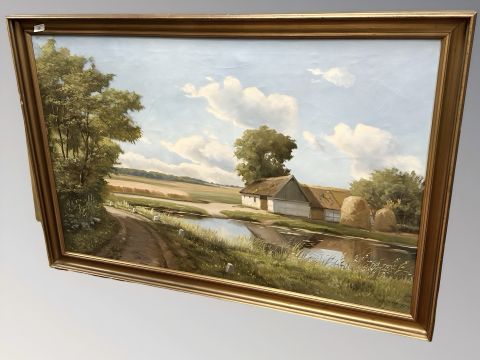 L Johansen : Pathway by a lake, oil on canvas, 117 cm x 76 cm.