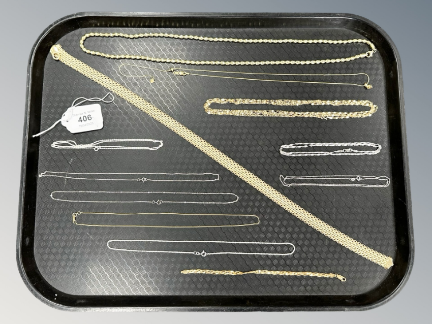 A group of sterling silver and gilded silver jewellery including long flat link necklace, length 48 cm, etc.