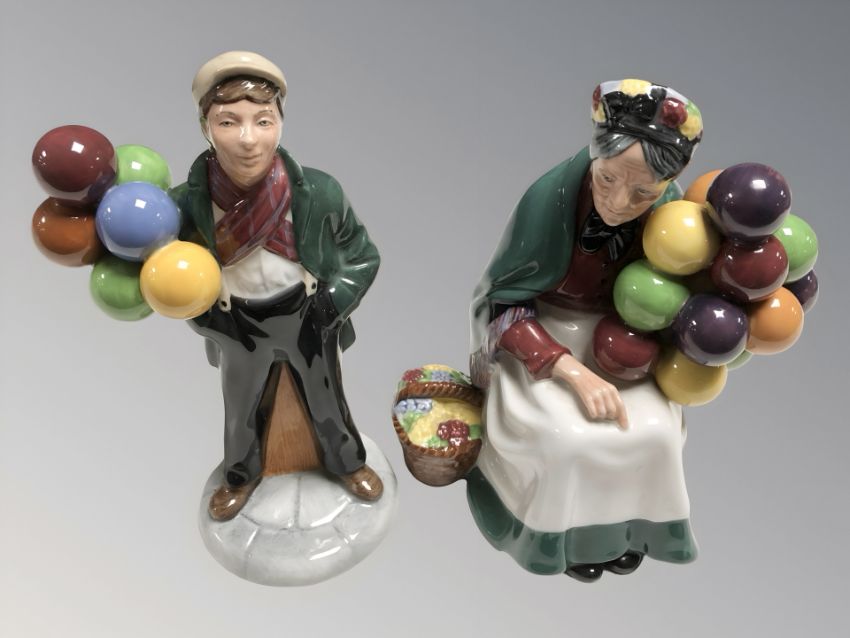 Two Royal Doulton figures 'The Old Balloon Seller' HN1315 and 'Balloon Boy' HN2934.