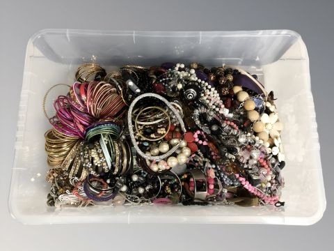 A large quantity of modern costume necklaces, bangles, etc. (1 box)