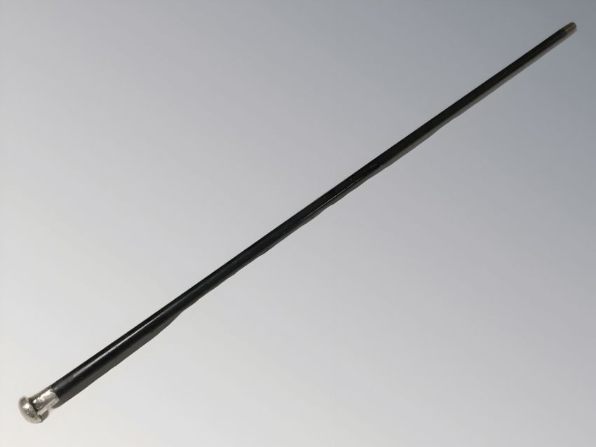 An ebonised walking cane with silver pommel, length 92 cm