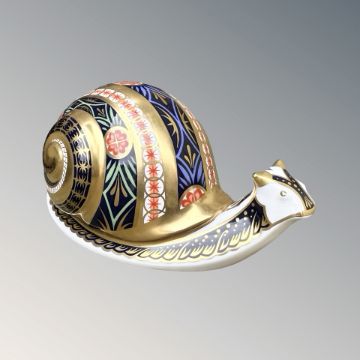 A Royal Crown Derby Garden Snail paperweight, silver stopper