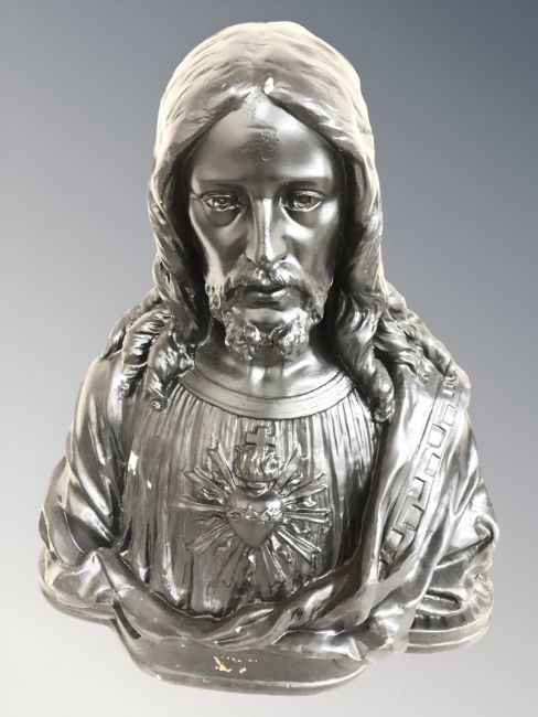 An ebonised plaster bust of Christ, height 47 cm