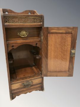 A late Victorian carved oak smoker's cabinet, height 52 cm.
