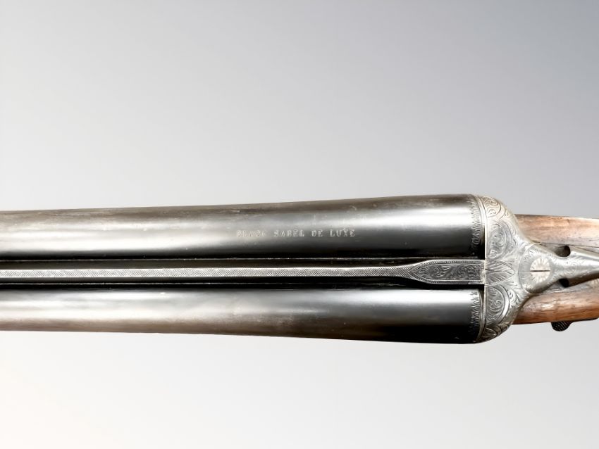 A Gunmark Black Sabel Deluxe side by side 12 bore shotgun, numbered 19729. Held on Auctioneer's permit number 10/V/000681/2025. All bidders on this lot must hold a valid Section 2 Shotgun certificate.