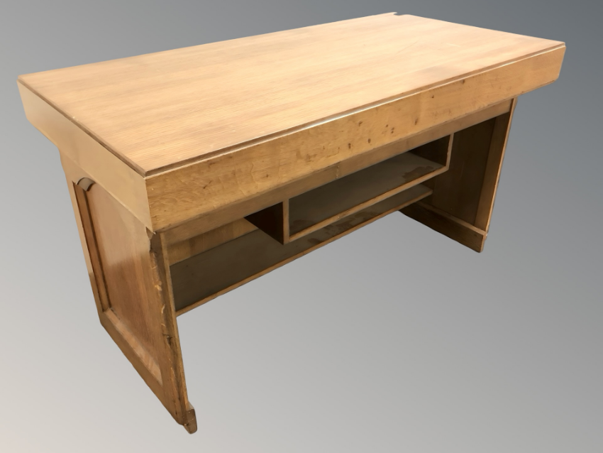 An oak ecclesiastical table, 136 cm x 69 cm x 78 cm high