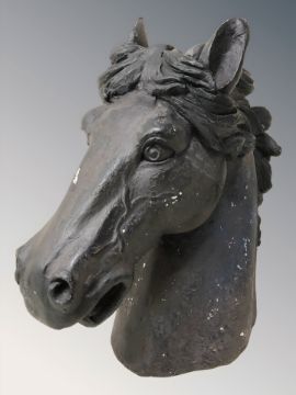 A painted plaster horse bust, height 44 cm.