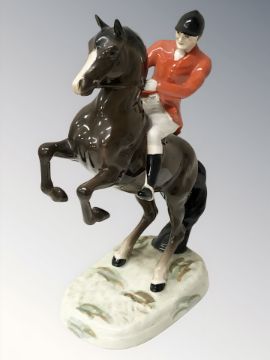 A Beswick huntsman on brown gloss rearing horse numbered 868, height 24 cm