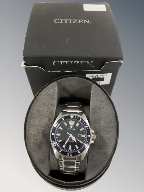 A Gent's stainless steel Citizen Eco-drive quartz wristwatch, case 43mm with box