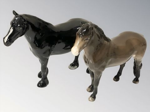 A Beswick brown gloss Exmoor pony and black gloss Dale pony, tallest 16.5 cm