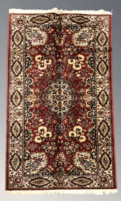 A machine made rug of Persian design, 187 cm x 93 cm.