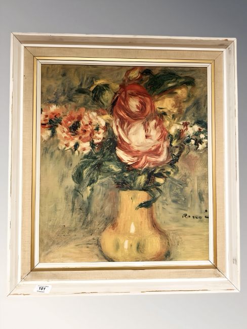 After Renoir : Still life with flowers in a vase, print on canvas, 41 cm x 48 cm.