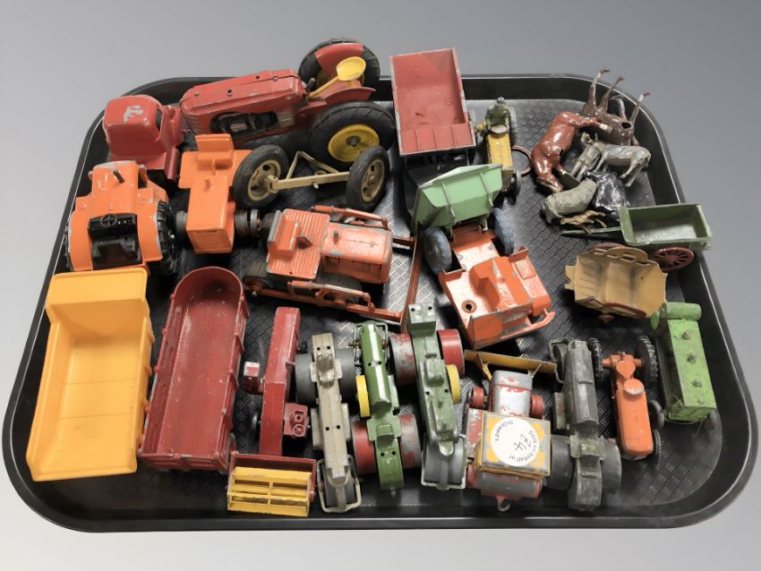 20th century die cast wagons and tractors including Lone Star, cast metal animal figures, etc.