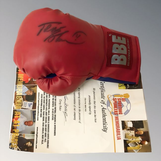 A boxing glove signed by Frank Bruno with certificate of authenticity