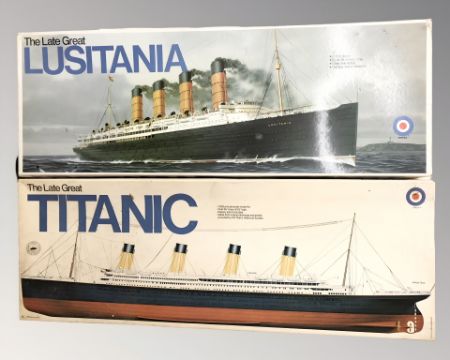 Two Entex 1:350 scale ship modelling kits, The Late Great Titanic and the Late Great Lusitania