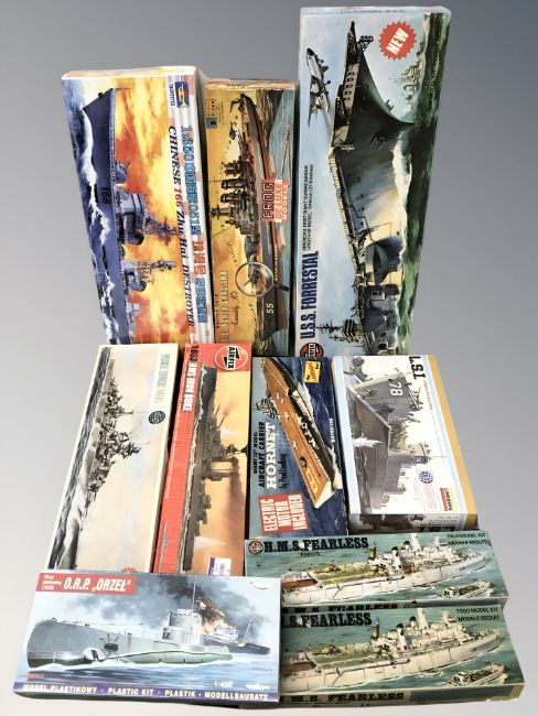 A group of naval scale modelling kits including Revell, Airfix, etc. (1 box)