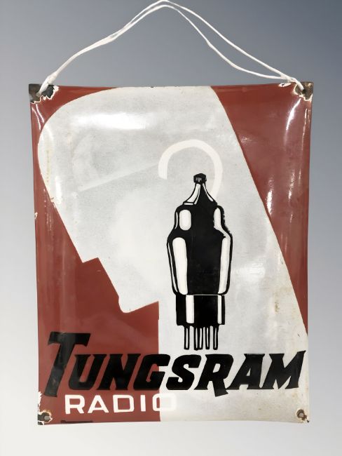 A Tungsram radio enameled sign, 40 cm x 33 cm.