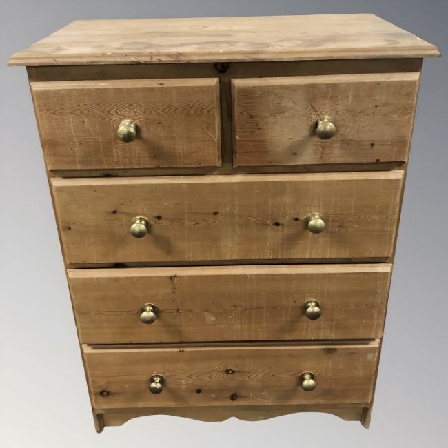 A 20th century pine five drawer chest, 82 cm x 47 cm x 106 cm