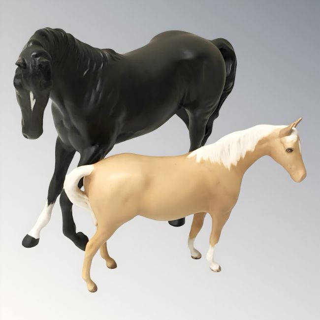 Two Beswick matt glazed horses, one black and one Palomino, tallest 18 cm