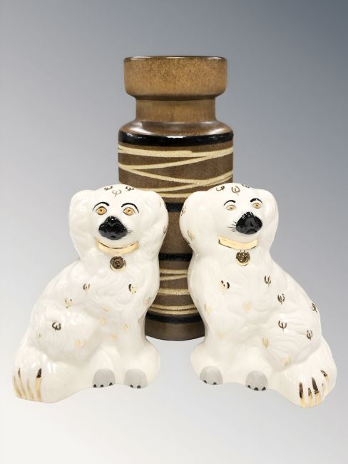 A West German pottery vase, height 30.5 cm, and a pair of Beswick Staffordshire spaniels, numbers 1378-5.