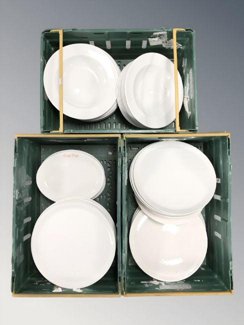 A quantity of modern dinner plates. (3 boxes)