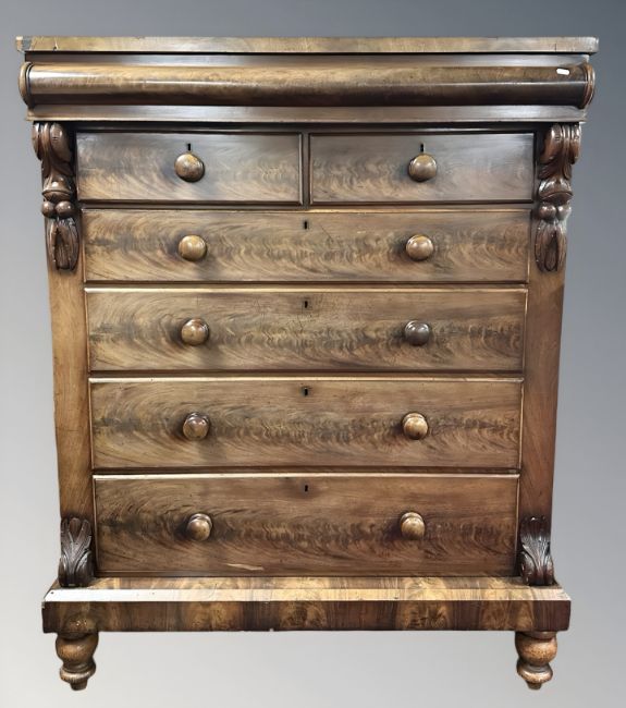 A Victorian mahogany Scotch chest, 122 cm W x 59 cm D x 150 cm H.