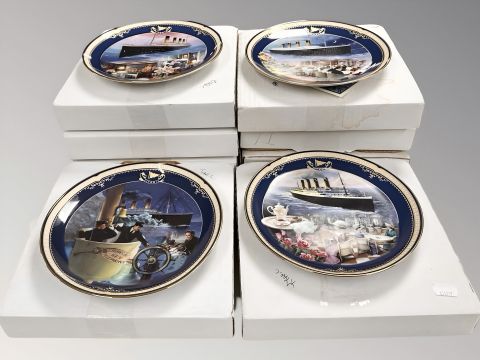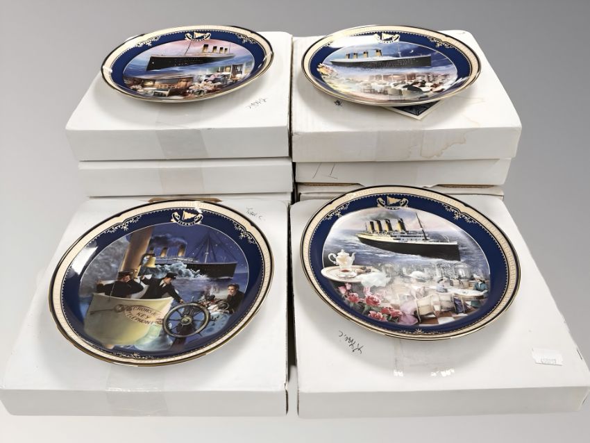 A group of Bradford Exchange Titanic collector's plates in boxes.