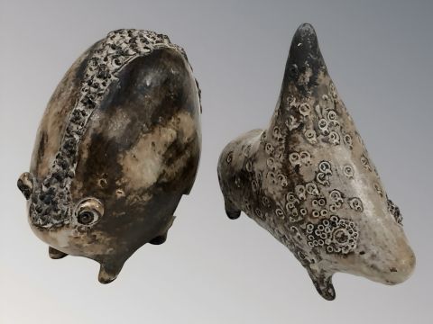 Two studio pottery mythical beasts signed HT, tallest 13 cm