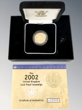 Queen Elizabeth II 2002 Gold Proof Sovereign, with certificate of authenticity, boxed.