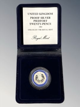 Royal Mint : 1982 United Kingdom Proof Silver Piedfort Twenty-Pence Coin, 10 g, with certificate of authenticity, cased.