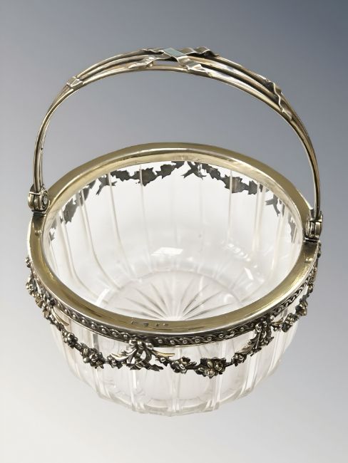 An ornate silver-gilt mounted crystal basket, height 13cm