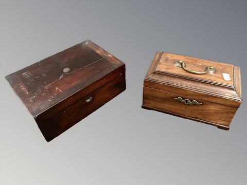 A George III mahogany tea caddy and a further Victorian box